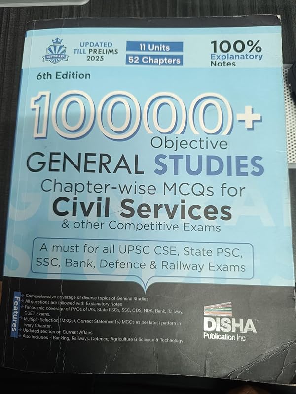 This book contains everything a competitive exam aspirant needs for MCQ practice. The content is very good and useful for preparation.However, the product I received was not in good condition. The cover page was damaged and there were some other minor issues with the packaging. I hope the seller improves the packaging and delivery process so that every student who orders this book receives it in proper condition.Apart from the delivery issue, the content of the book is excellent and very helpful for exam preparation. 👍
