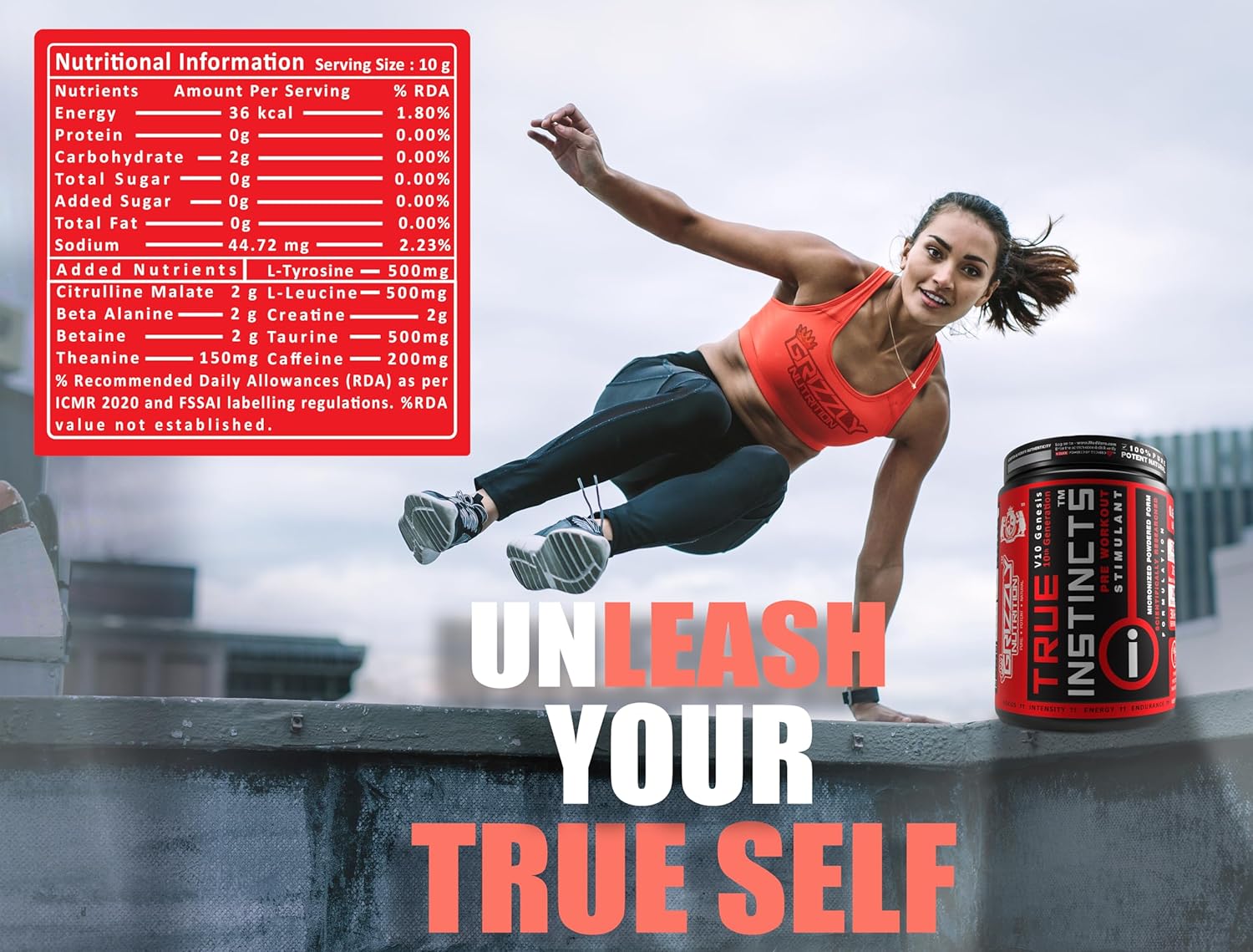 INSTINCTS is a pre-workout supplement that provides you with an instant surge of energy. Each scoop in the formula is a combination of focus and stimulant matrix that raises your body temperature and prepares you for massive pumps.