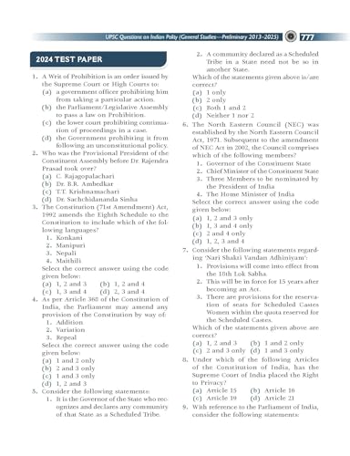 Question Set I: UPSC Questions on Indian Polity General Studies Prelims (2013-25)