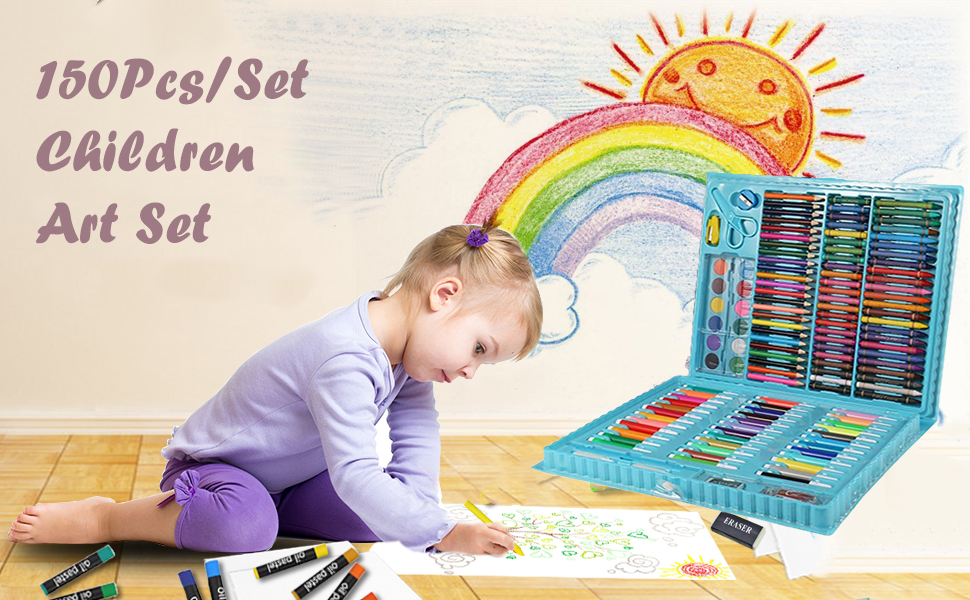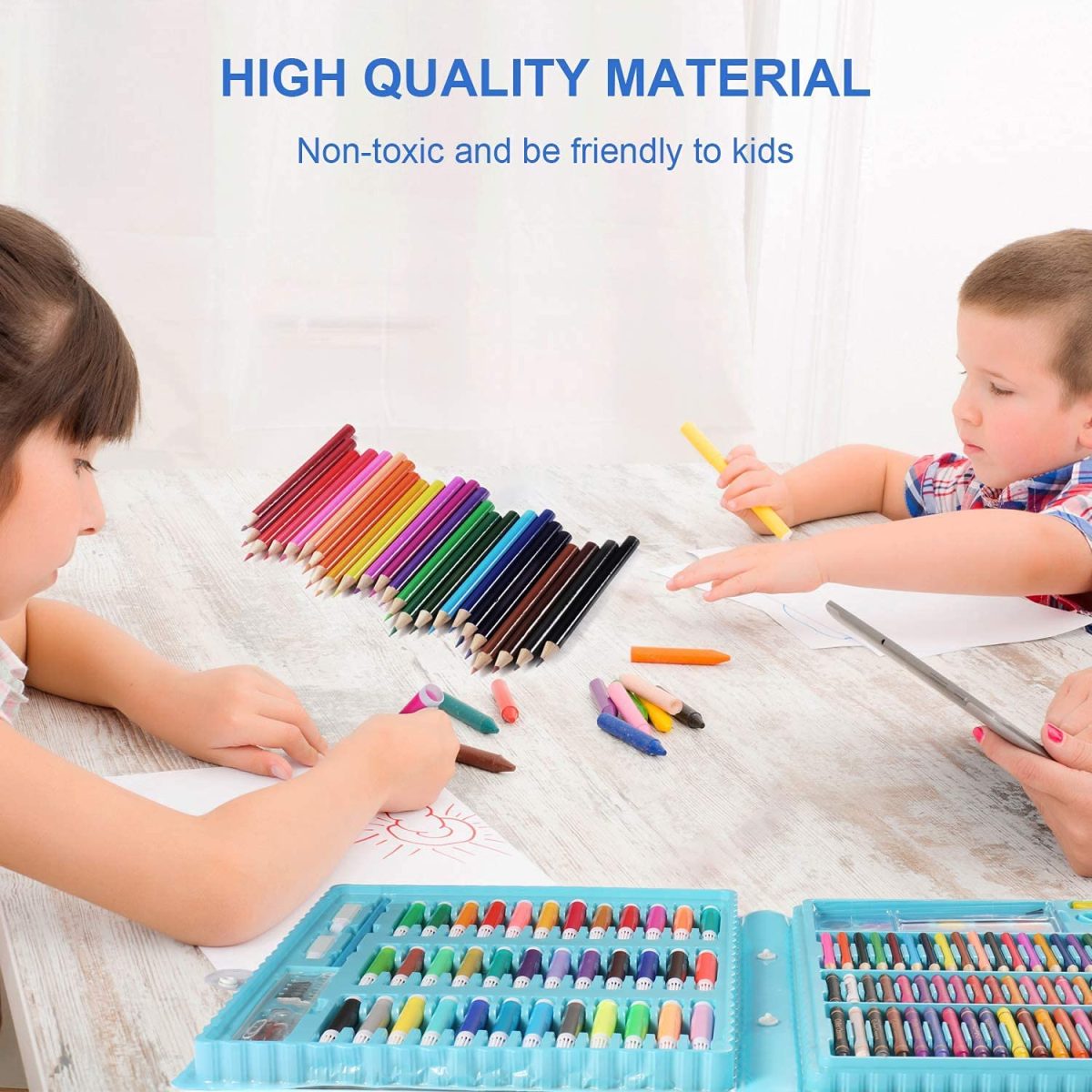 - EASY TO CARRYING: drawing art kit equipped with Sturdy handle,portable and easy to carry.Make it easy for your child to color and create anywhere you can open your case! Great for Outdoor use, traveling, camping, trip
