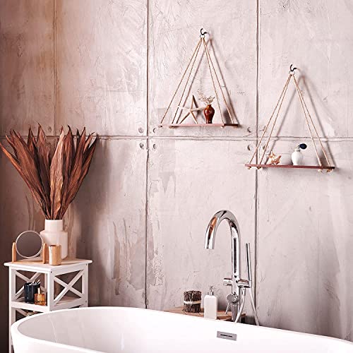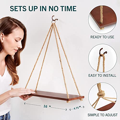UHUD CRAFTS Hanging Shelves – Adjustable Rope Hanging Shelf, Wall Hanging Decor, Lightweight, Premium Wooden Shelf